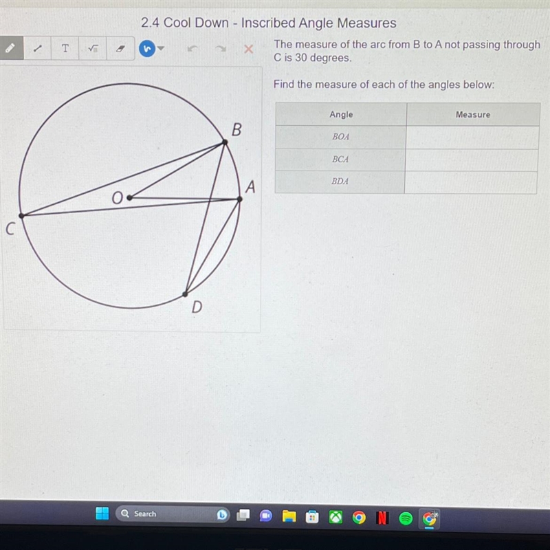 If angle at the center(30) is twice BCA, then BCA is 15.