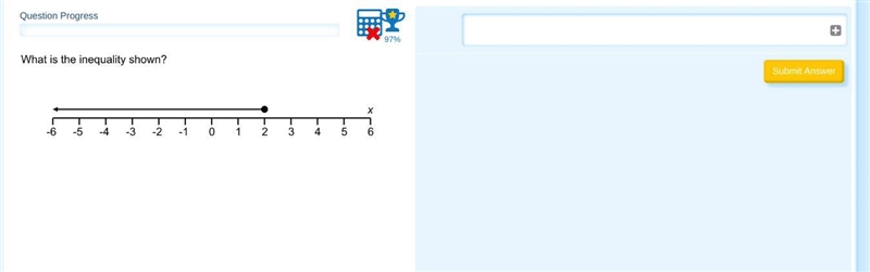 NOTE: if the circle at 2 were not filled in then that would mean x<2 (2 would not be an accepted value of x)