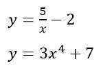 The first equation is x^-1 not x. first equation has an asymptote and is curved.