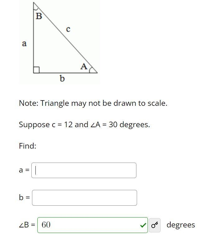 if angle A is 30, then angle B must be 180 - 90 - 30 = 60°.