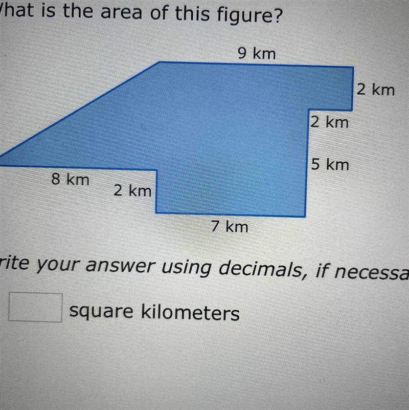 split the shape into 3 parts (the triangle on the left, the large rectangle and the little square in top right)