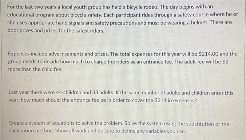 which means the entrance fee total for children will be $44x and for adults will be $33(x+2).