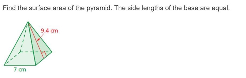 S = slant height = 9.4 cm