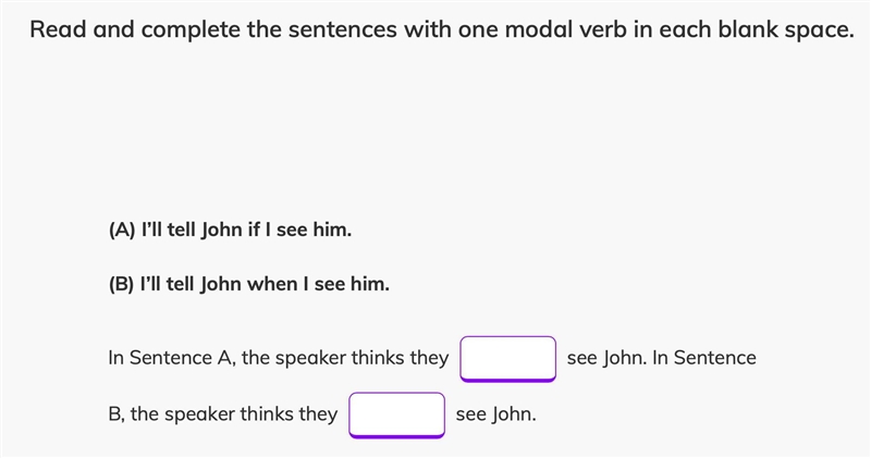 3- In sentence A, The speaker thinks they might see John. In sentence B, the speaker thinks they will see John.