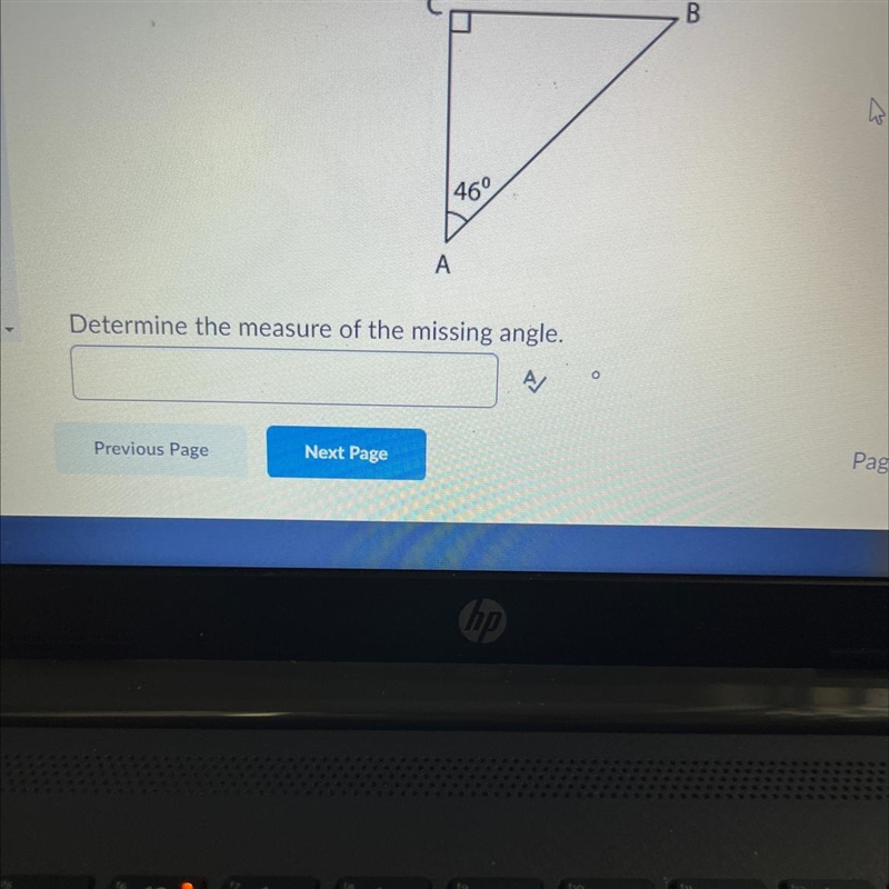 Angles in a triangle add up to 180 degrees. 180-46-90=44.