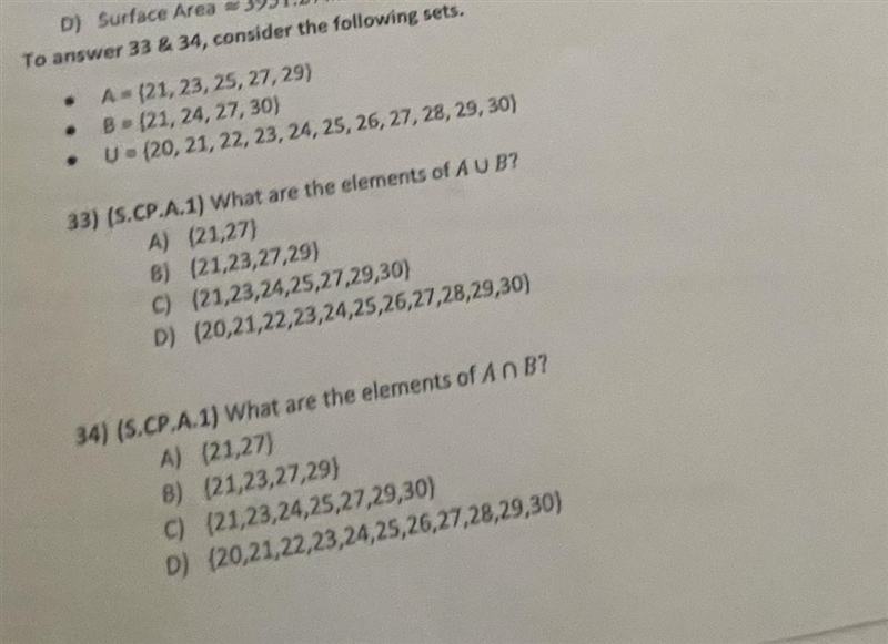 33) The elements of A U B are