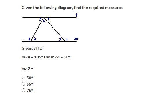 if angle 4 = 105°, then angle 3 must be 180 - 105 = 75° (angles in straight line add up to 180°).