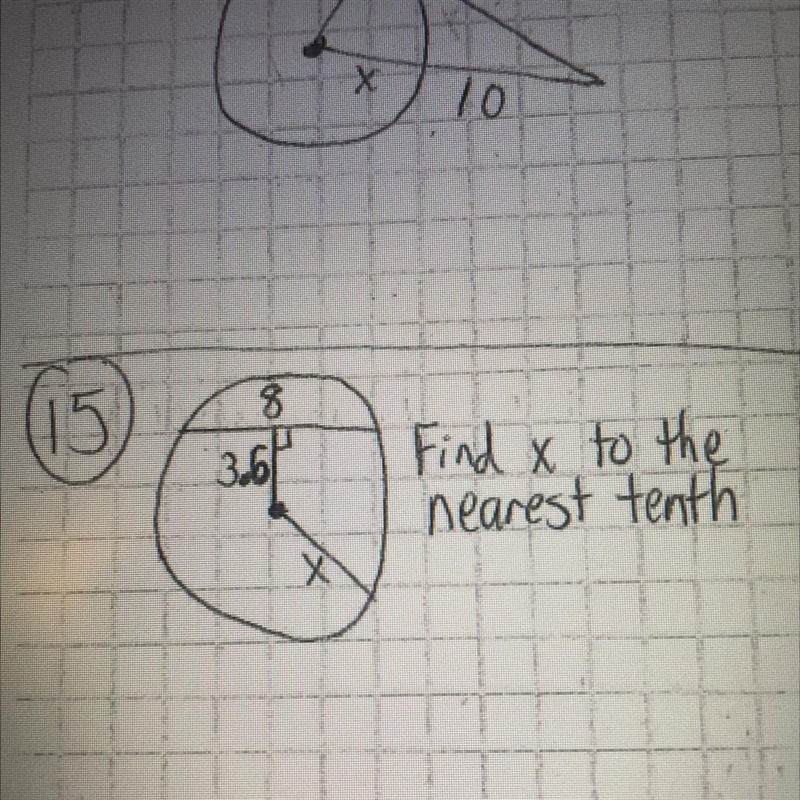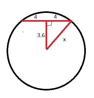 x^2 = 3.6^2 + 4^2 (Pyhtagorean theorem)