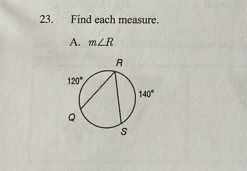 m∠R = arc QS = 100°