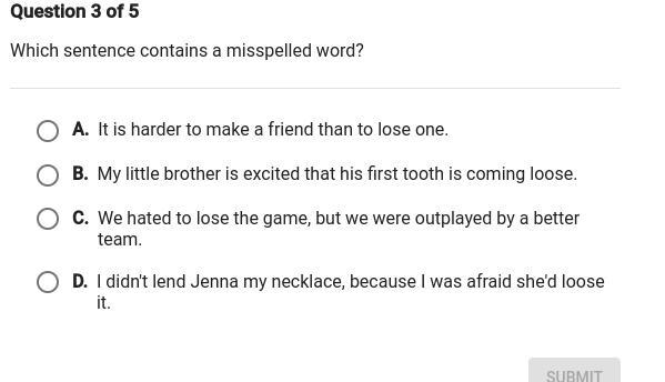 The answer is D, as “lose” is misspelled as “loose”. I hope this helped.