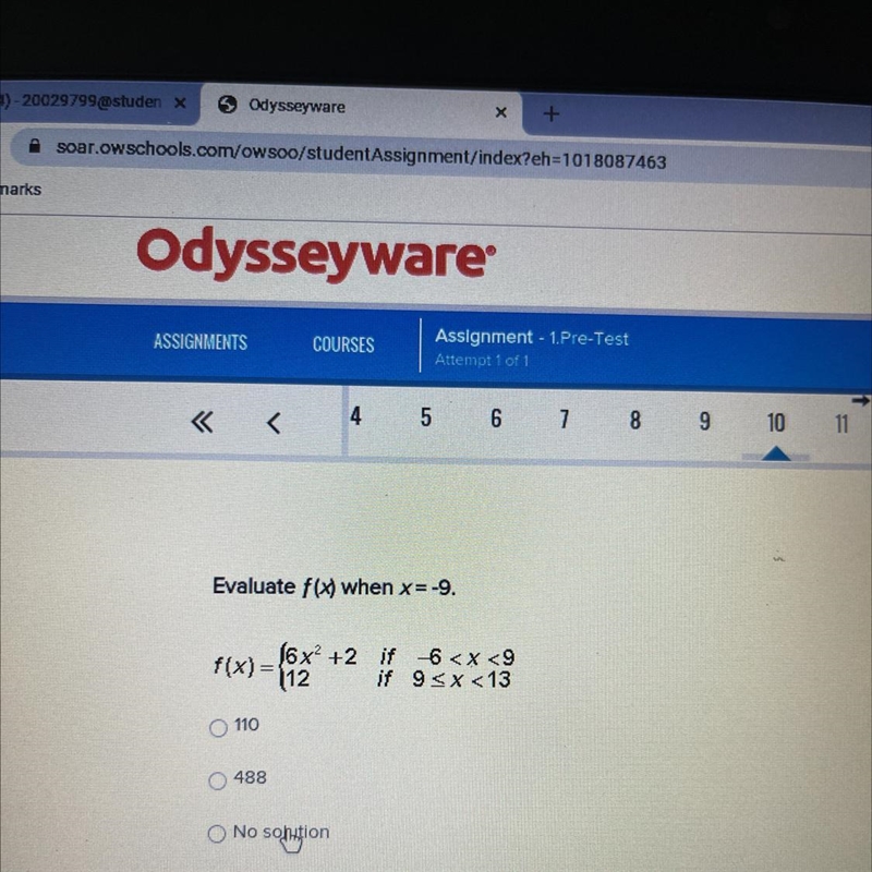 Evaluate f(x) when x= -9. f(x) = 16x² +2 if 6 (12 if 9 x <13