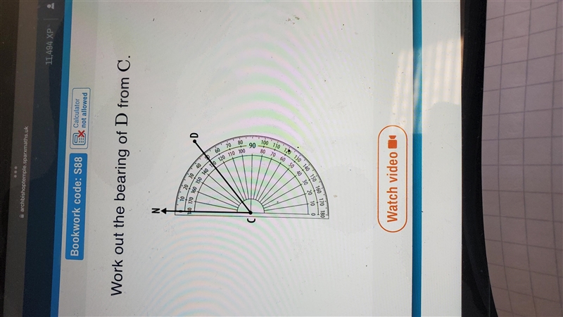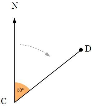 when getting a bearing, we're referring to the angle from the North line moving clockwise, so of D from C? well, the "from" point gets the North line and we check the angle from that North line clockwise to the other point, Check the picture below.