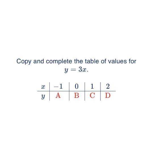 so you need to multiply each value in the x row by 3 to get the answer for y
