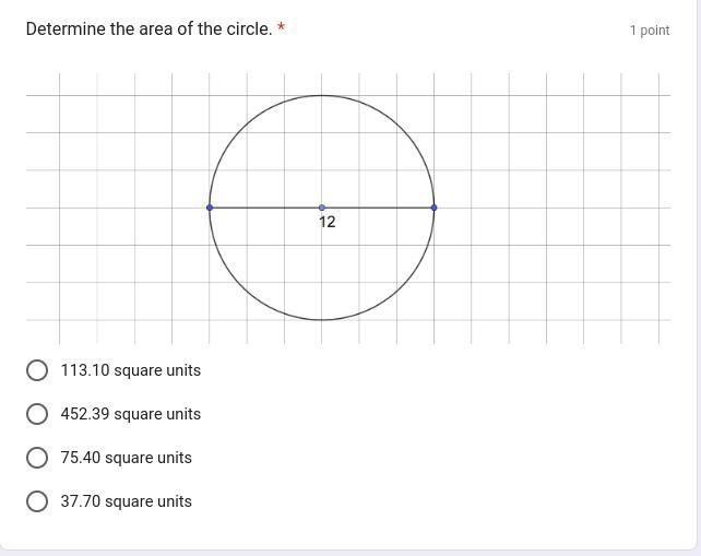 picture #2 - area = πr^2 -> π*6^2 = 113.10