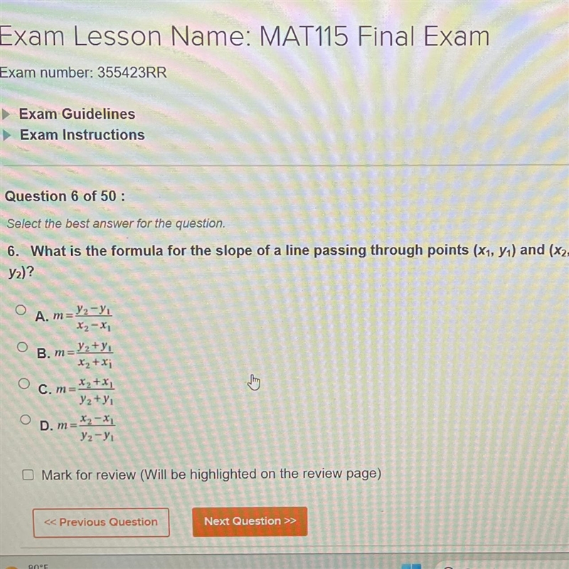 6. Which of the following is the distance formula? A √√(x₂-x₁)² + (y₂ − y₁)² □B √√(x₁y₁)² + (x₂Y₂)² C √(x₂ + y₂)² + (x₂ + y₂)² ] D √√√(x₂ + x₁)² + (y₂ + y₁)²