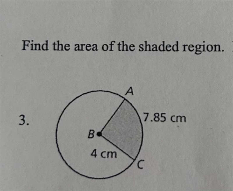 Area of the shaded region = (16π x 7.85)/8π = 2 x 7.85 = 15.7 cm^2