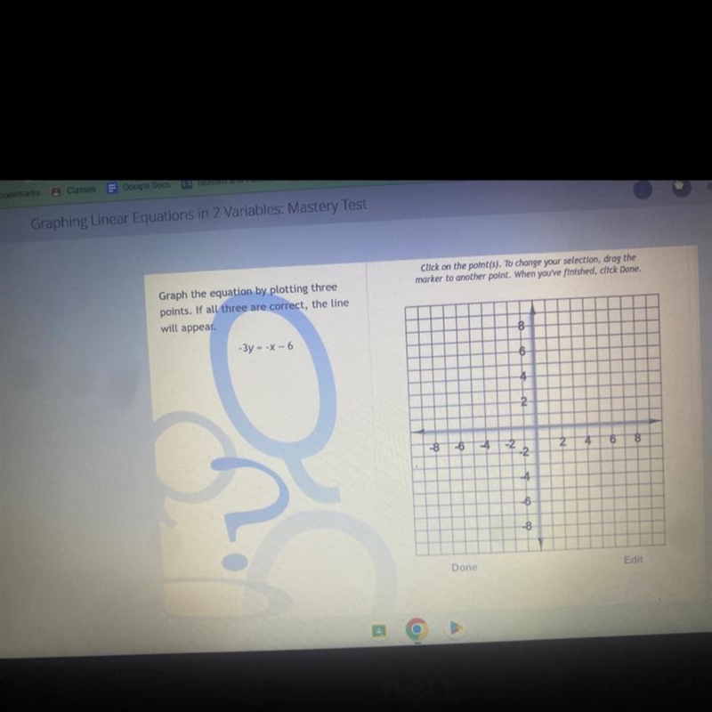 Graph the equation by plotting three points. If all three are correct, the line will-example-1