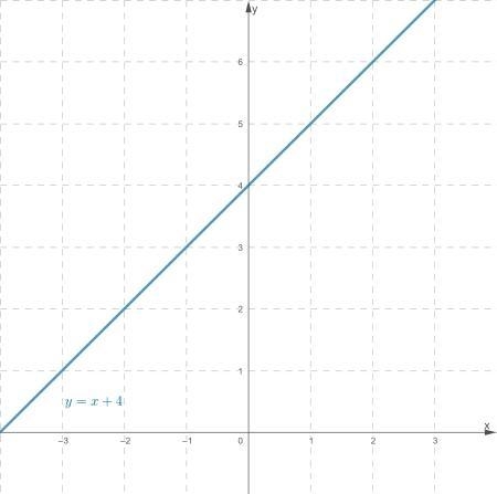 - Since y=x+4 is a linear function and the equation is written in slope-intercept form, the slope of the line is 1 and the y-intercept is 4 . First, plot the intercept at (0,4). The slope is 1 so from the intercept, go one unit to the right and one unit upward. This gives another point on the line. The line is then drawn through the two points, giving the graph.