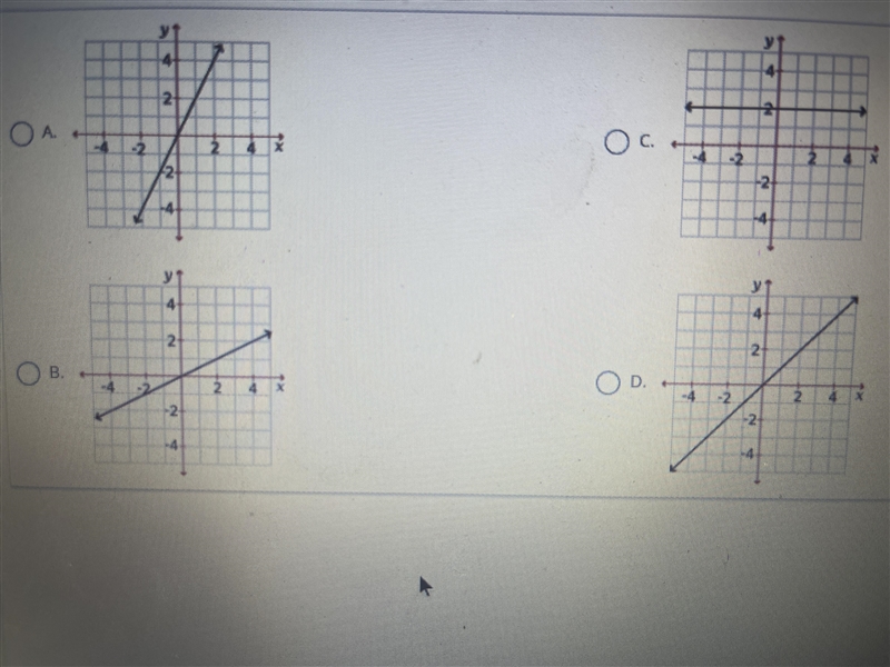 A, the graph goes up two and over one. 2x1=2, so when x is 1 y will be 2. 2x2=2, so when x is 2 y will be 4.