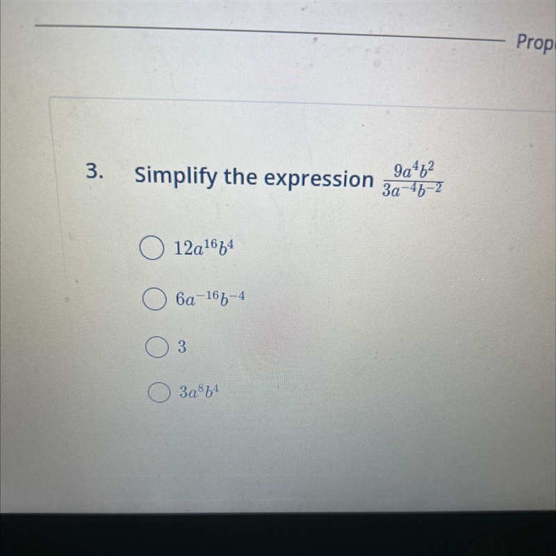 3. Simplify the expression 12a¹6f4 6a-166-4 3 3a³b4 9a46² 3a-46-2