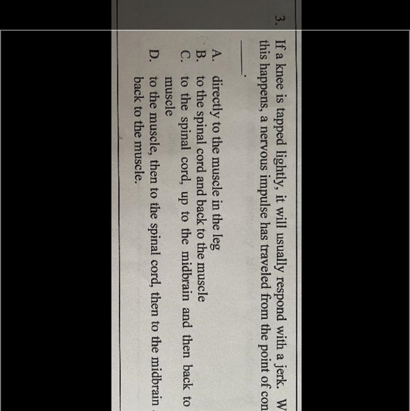 What is being described is the patellar reflex. The patellar tendon is stimulated (using a reflex hammer or I've also used the side of a phone) causing a nerve impulse to be sent to the L2-L4 segments of the spinal cord which then sends a signal back to the quadriceps muscle telling it to contract.