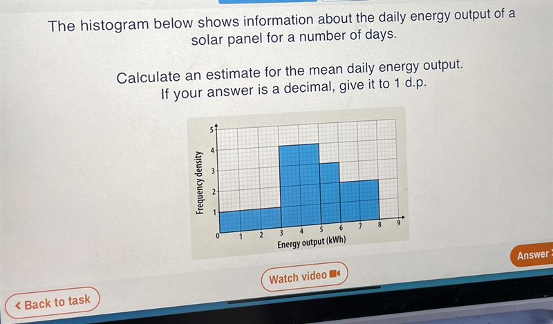 You want an estimate of the mean of the solar panel output represented by the given histogram.