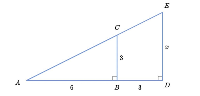 See how ABC has AB=6 and BC=3?Well, lines AE and AD both come from A, so that means AB/AD=CB/ED