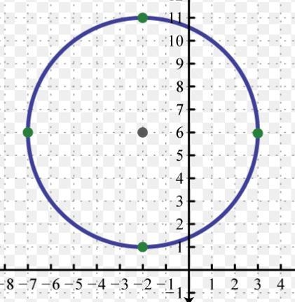 Center is (h,k)=(-2,6) with radius r=5, so the equation is: