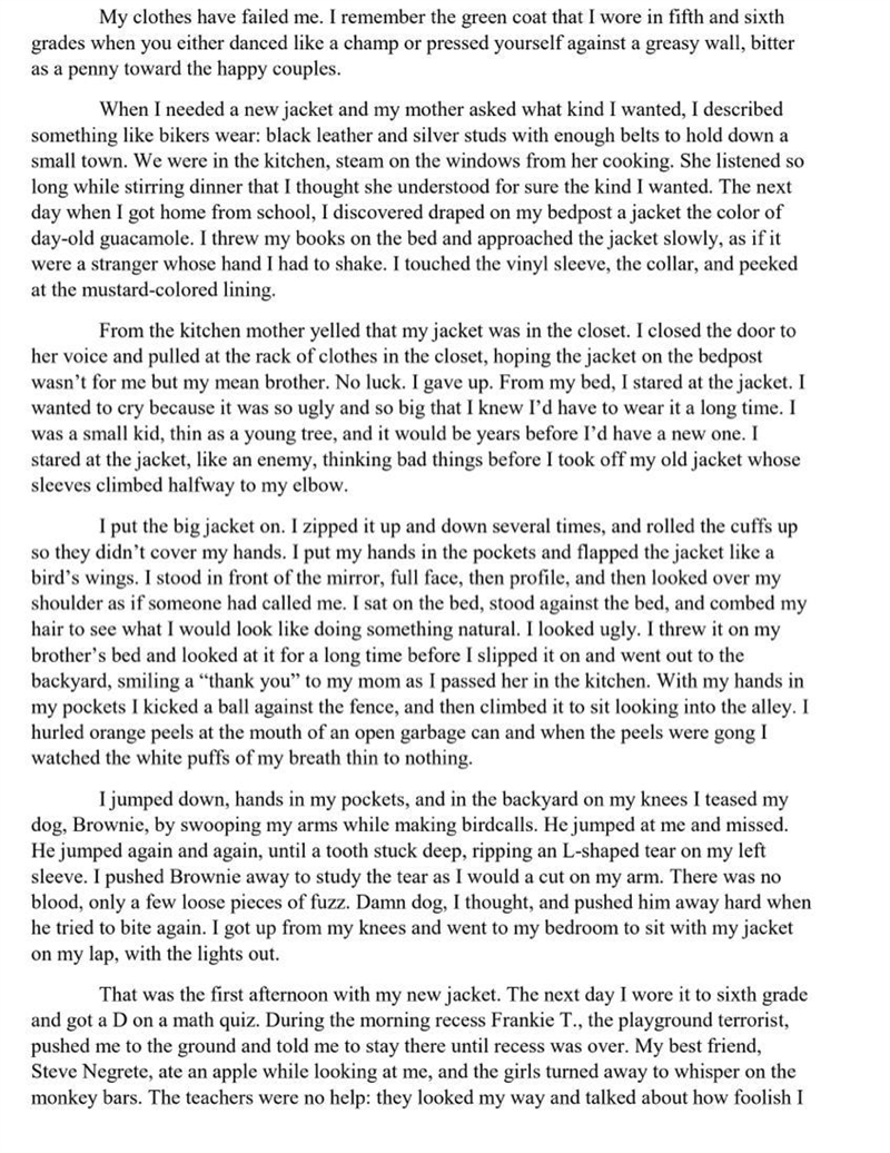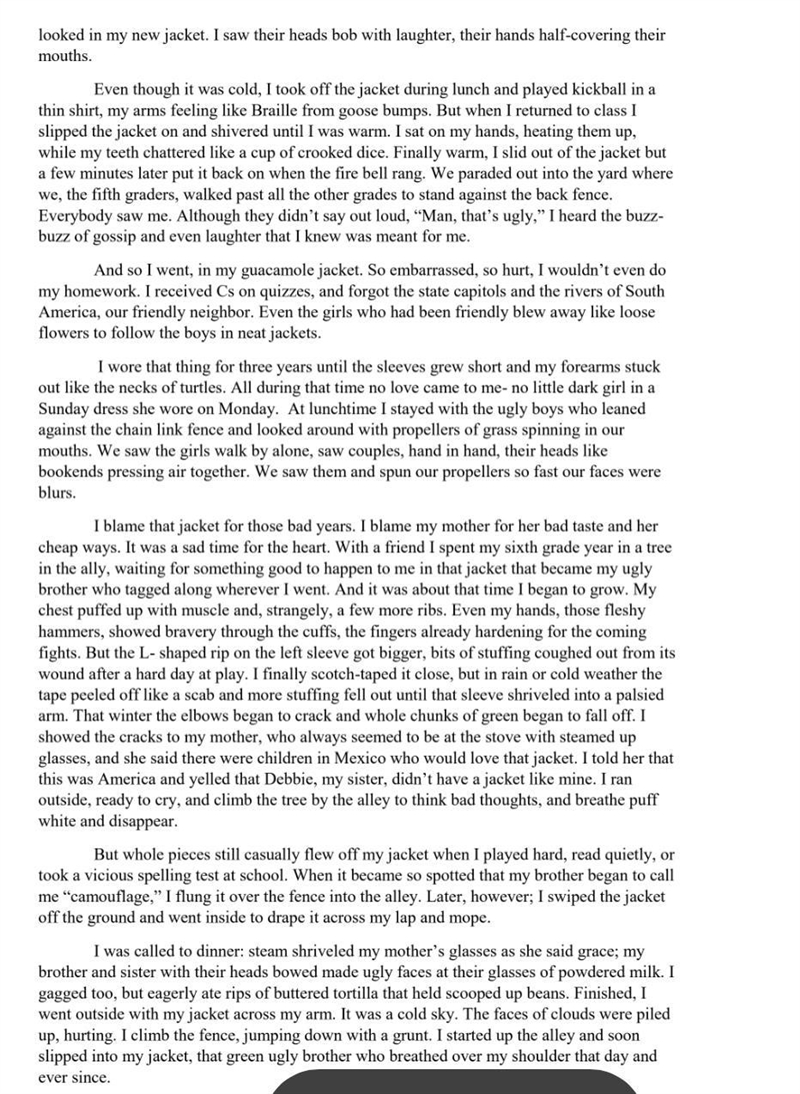 1. What is the Universal Theme of "The Jacket" by Gary Soto, include a quotation from the story that clued you in to your identified universal theme.