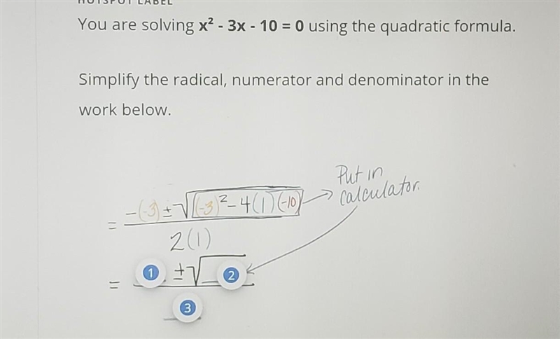 (-3)^2 - 4(1)(10) = 9 + 40 = 49