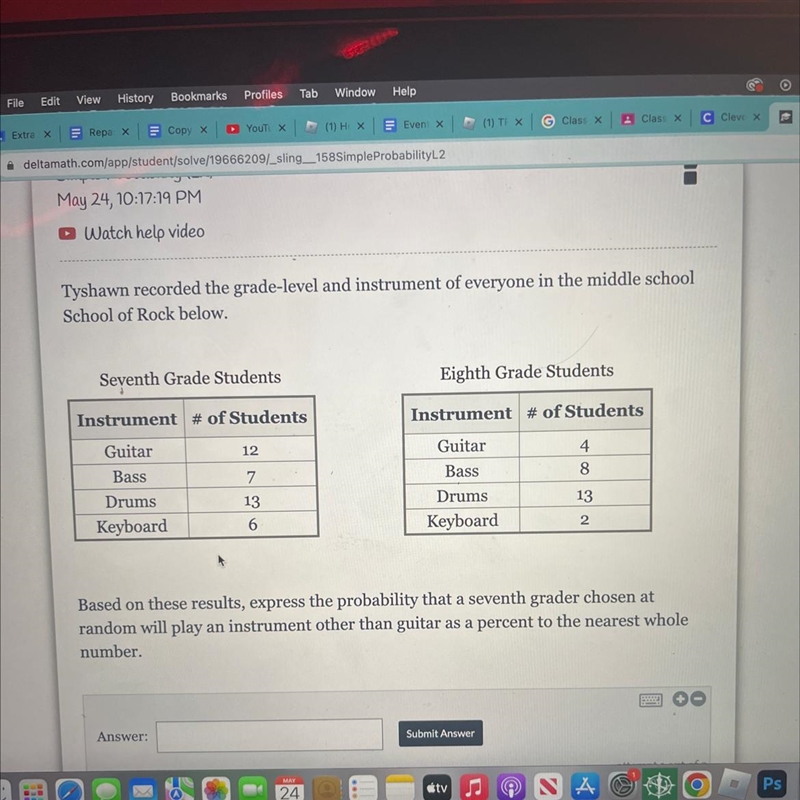 Hence, the probability that a randomly chosen seventh grader will play an instrument other than guitar is: