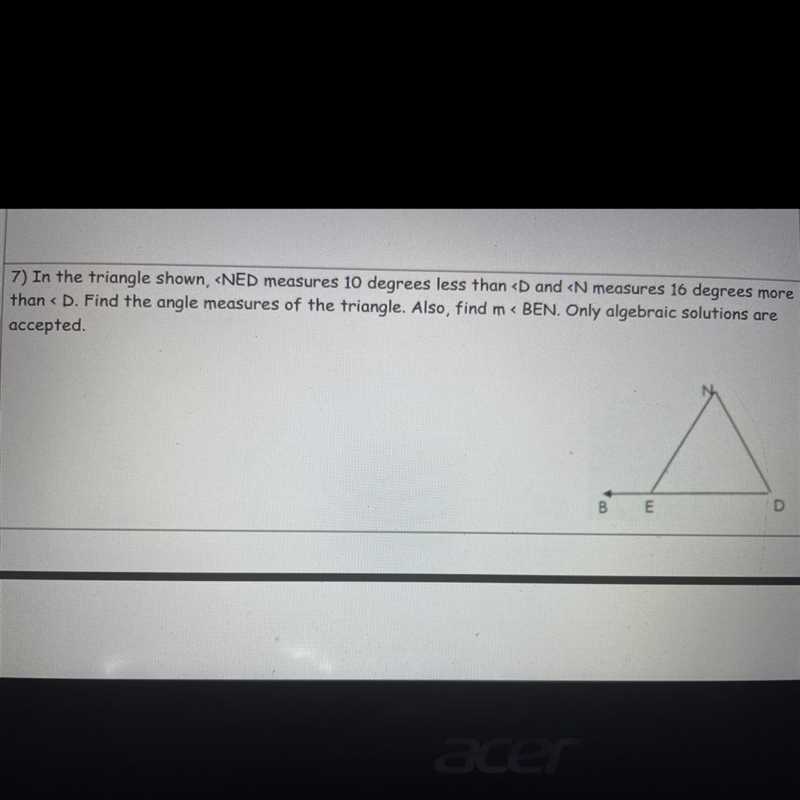 Angles N + E + D = 180 because all 3 inside (interior) angles of a triangle always add up to 180.