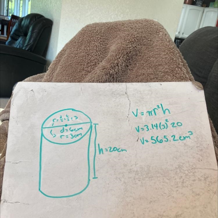 A cylinder has a height of 20 cm and a diameter of 6 cm. What is the volume, in cubic centimeters, of the cylinder? Use 3.14 for T.
