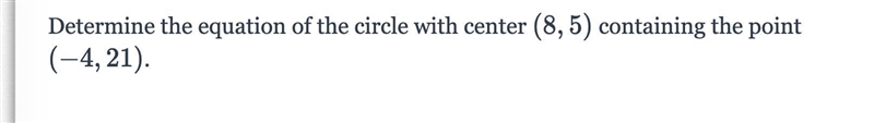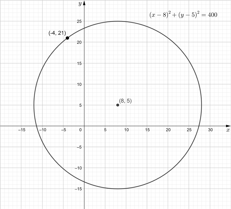 then with (h, k ) = (8, 5 ) and r = 20, the equation of the circle is