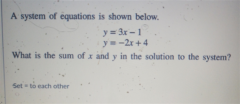 The sum of x and y is (x +y) = (1 +2) = 3.