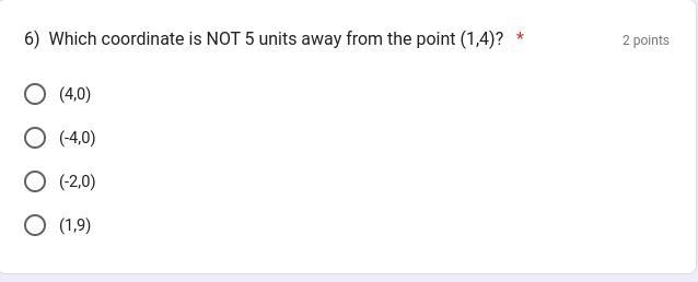 The point that is NOT 5 units away from the point (1,4) is (4,0).
