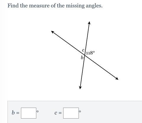 Angle C is supplementary (2 angles that add up to 180 degrees) from the given angle, so we can subtract 118 from 180 to give us 62, which is angle c.