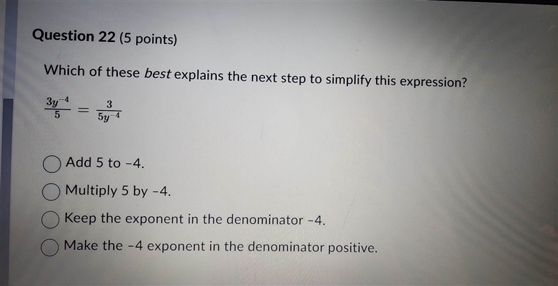 Which of these best explains the next step to simplify this expression?