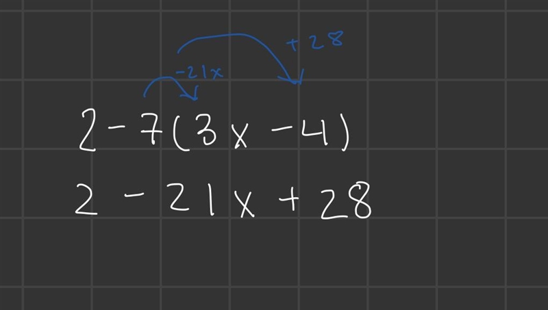 Tess's expression is NOT equivalent because she forgot to include the - sign when multiplying -7 and -4.