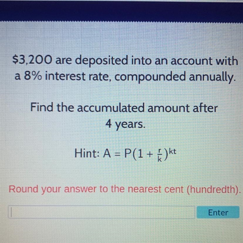 $3,200 are deposited into an account with a 8% interest rate, compounded annually.