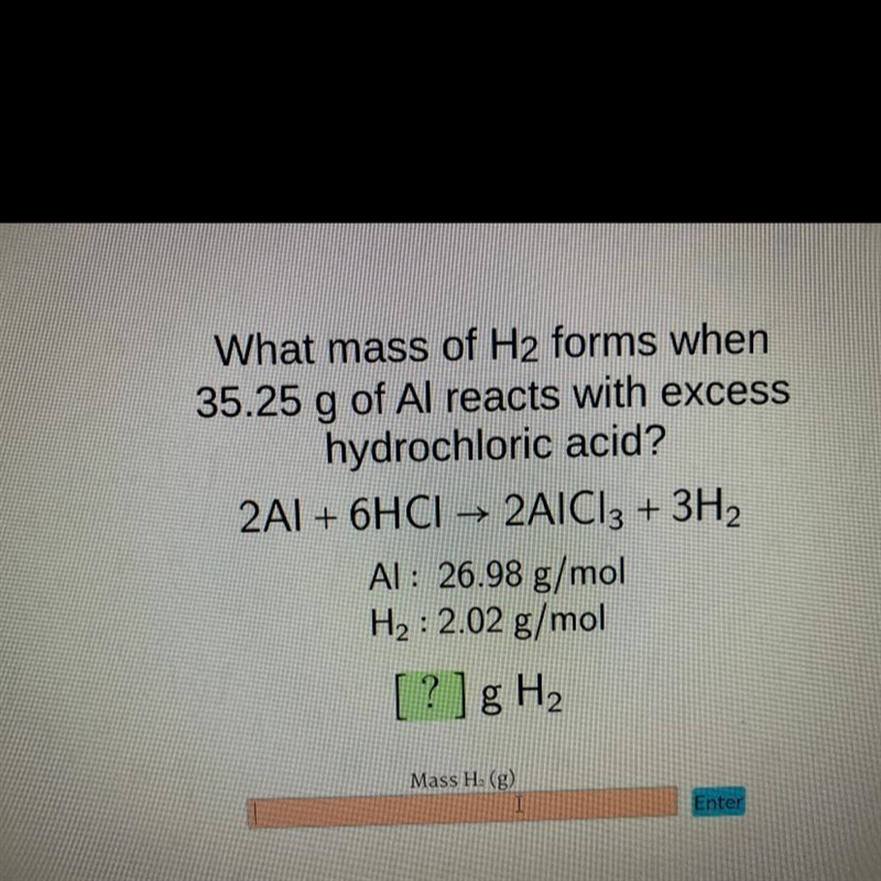 Number of mol. of H2 x molar mass of H2 = 3.9588mol = 4 mol (estimated value)