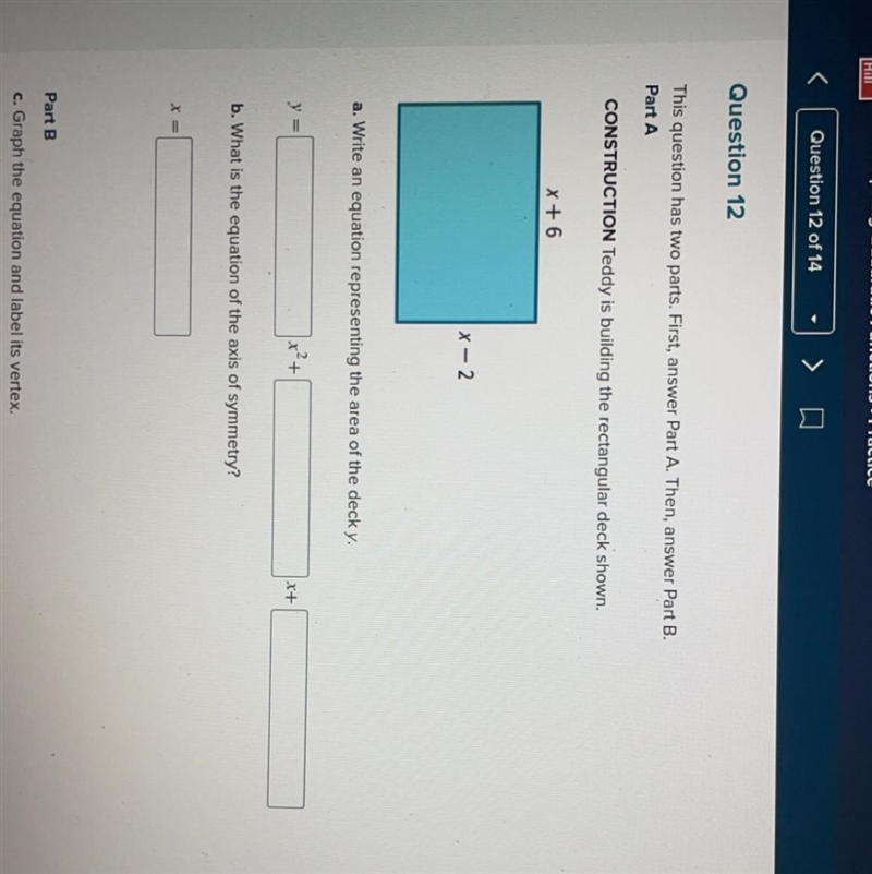 Part A CONSTRUCTION Teddy is building the rectangular deck shown. x + 6; x - 2