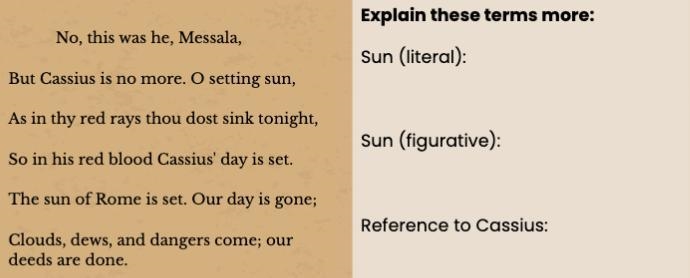 Sun (figurative): Symbolizes power, glory, or vitality. It represents Cassius' influence and significance, implying that his power has faded or he is no longer alive.