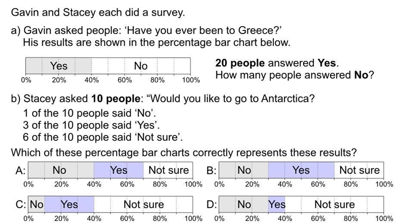 But 20 people answered yes so 20/x = 0.4 which gives, x = 20/0.4
