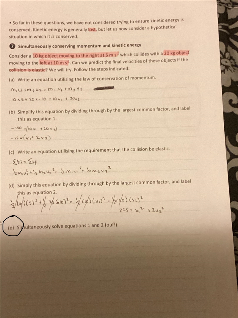 m1 (v1 - V1) = m2 (V2 - v1) rewriting 1st equation