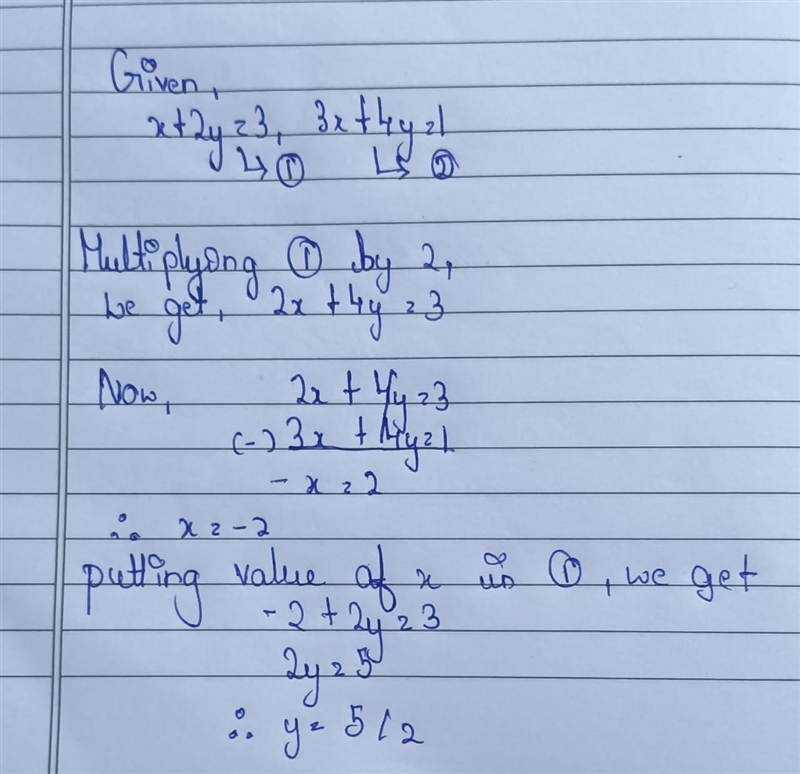 x+2y=3 and 3x+4y=1