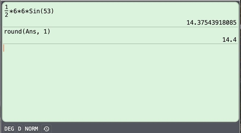 A = 1/2(6 m)(6 m)·sin(53°) ≈ 14.4 m²