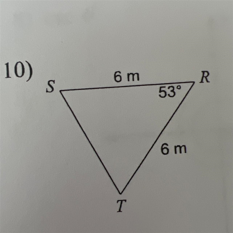 You want the area of ∆RST with sides RS and RT both 6 m, and angle R = 53°.