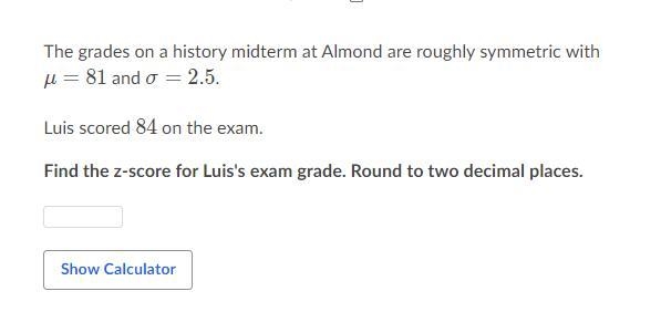 To calculate the z-score for Luis's exam grade, we can use the formula: