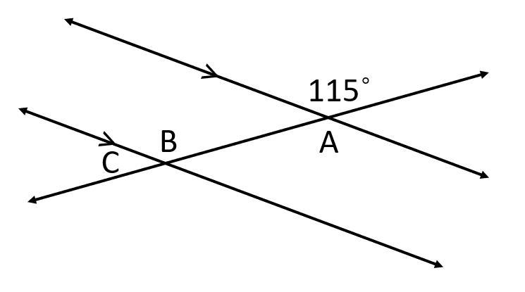 Given the diagram below, determine the measure of angles A, B, and C. NO LINKS!-example-1